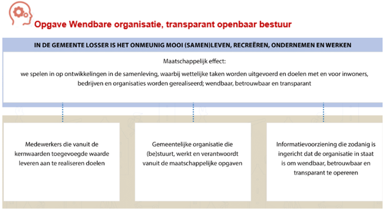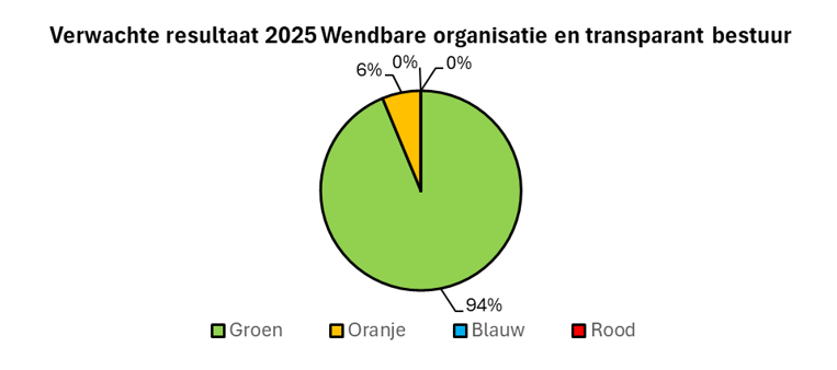 Binnen de opgave wendbare organisatie en transparant openbaar bestuur hebben we de afgelopen jaren verschillende resultaten bereikt. Dat betekent dat we overgaan van het ontwerpen en implementeren van nieuwe werkwijzen en methoden naar de reguliere uitvoering. Een belangrijk deel van de opgave wordt vanaf 2026 going concern. Het accent in de opgave zal zich met name toespitsen op de bedrijfsvoering, waar in een enkel geval kaderstelling door de raad noodzakelijk kan zijn. Vanaf 2026 en verder zijn het binnenhalen en behouden van menselijk kapitaal en de verdere ontwikkeling van de informatievoorziening de twee strategische thema’s die aandacht behoeven.